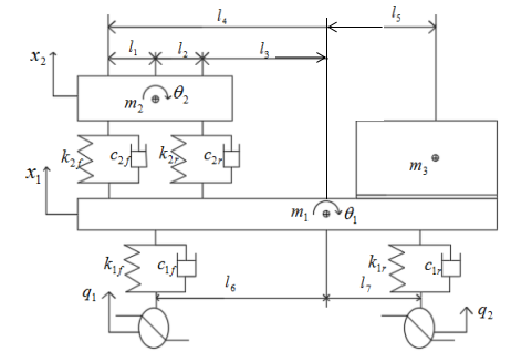 The smoothness of the car can be analyzed by the block diagram of the "road-automobile-human" system shown in Figure 1-1. Road roughness and speed have formed an "input" for the vehicle's vibration system. This input is transmitted through the vibration system consisting of elastic, damping elements such as tires, suspensions, and seat cushions, and suspended and unsprung masses to obtain the output of the vibration system. The acceleration of the suspension or the further acceleration transmitted to the human body through the seat. This acceleration is evaluated by the body's response to vibration - comfort to evaluate the smoothness of the car.