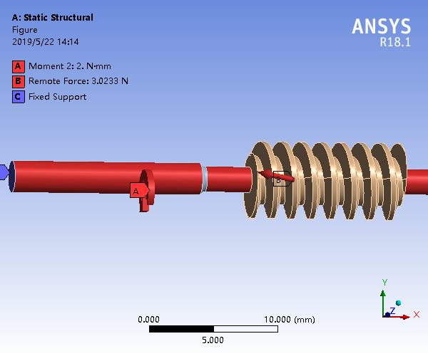 针对以上构建的随动转向控制器模型,运用有限元分析方法,使用Ansys Workbench建立有限元分析模型,对随动转向模块进行了静力学分析,得到了关键零件的应力云图,找到了零件受力薄弱处。