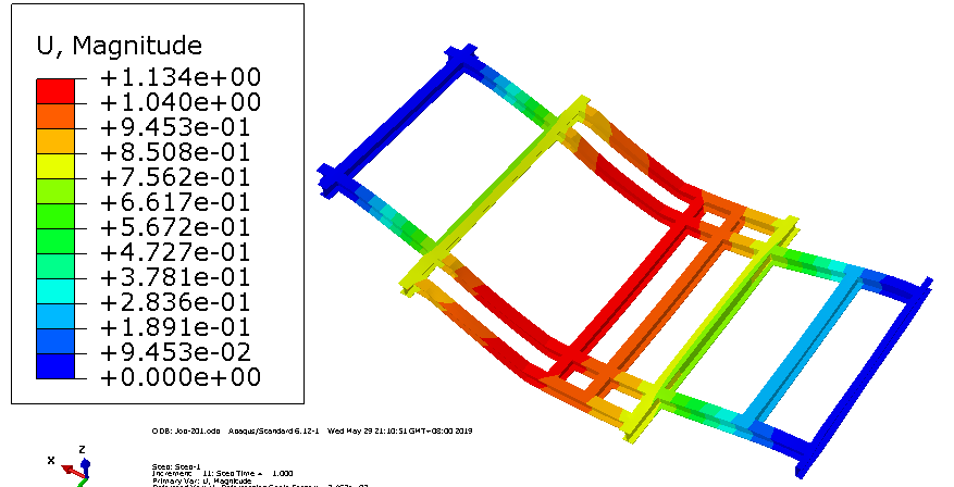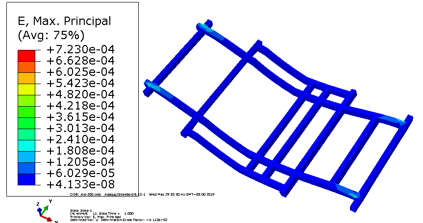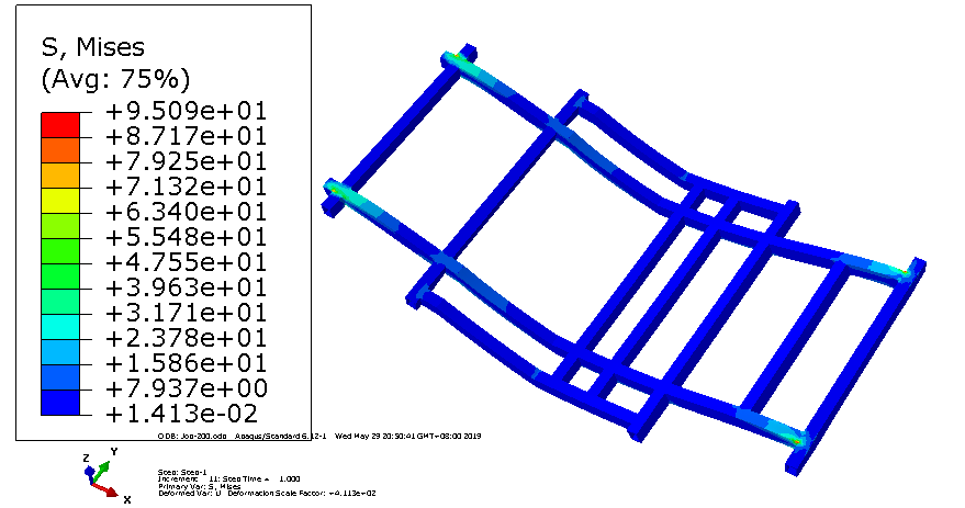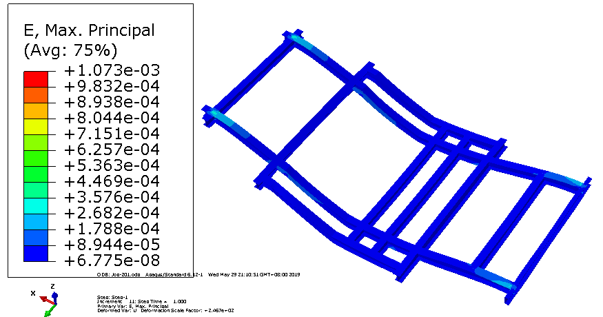第三章对焊接车架和铆接车架进行了对比分析,构建了车架的CAD三维模型和有限元模型,利用Abaqus软件对电动车车架进行了静力结构分析,得出了电动汽车车架的总变形量、应力及应变云图。