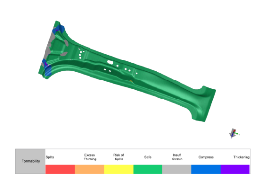 然后以确定的优组合优水平参数作为基础,分别分析了三个实验因素板材初始温度、冲压速率以及摩擦系数对成形结束后安全区域面积比例,最大变薄以及冷却后最大回弹三个试验指标的影响。结果表明:在所选工艺参数取值范围内,三个实验指标均会随着板材温度的升高而变得更优,其中最大回弹改善最为明显;安全区域面积比例及成形性会随着冲压速度或者摩擦系数的增大而变差。