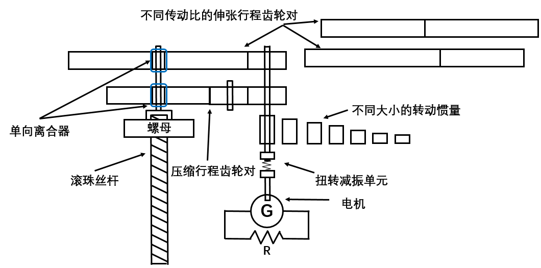 本文提出了一种新型的机械整流馈能减振器的设计方案,并试制了试验样机;该试验样机匹配了不同大小的转动惯量,可以研究转动惯量对能量回收效率的影响;匹配了不同传动比的压缩行程和伸张行程齿轮对,在压缩行程和伸张行程产生不同的阻尼力;具有扭转减振单元,减少机械传动结构的磨损增加了装置寿命,依托的项目是国家自然科学基金面上项目“并联互通液电馈能式主动径向转向架理论及试验研究”。具体的工作如下: