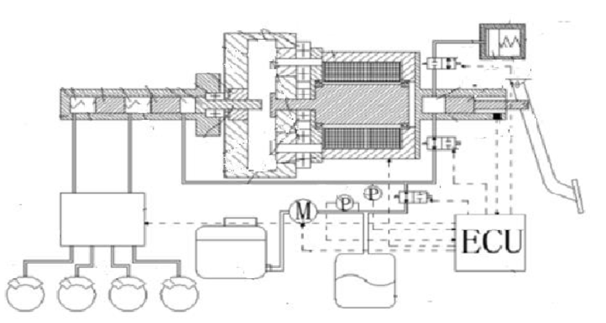图1.3 一种双电机驱动的电子液压制动系统结构