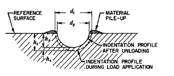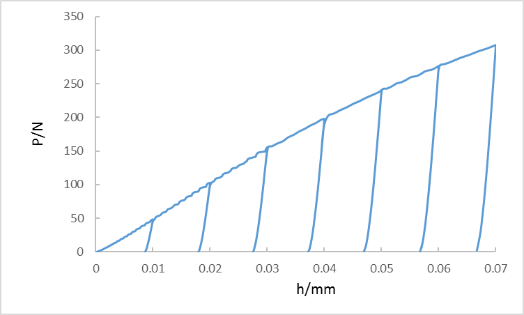连续球压痕法是通过反复的加载和卸载,来实现连续压痕的,在加、卸载的同时记录下测试过程中的载荷以及压痕深度,将载荷和深度记录,绘制成为载荷-位移曲线。之后推导得出的