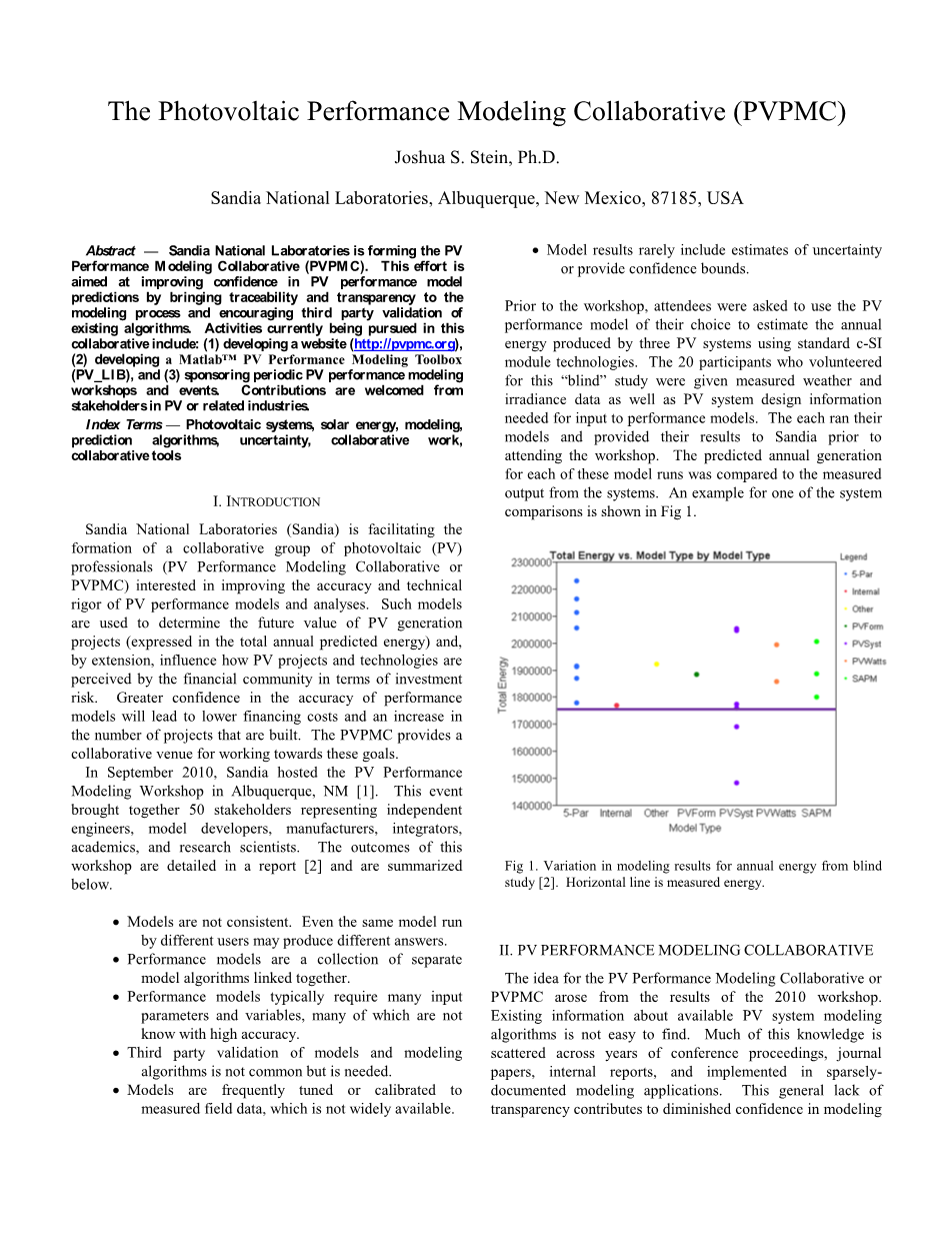 II. 光伏性能建模协作光伏性能建模协作的理念PVPMC来自2010年研讨会的成果。关于可用的PV系统建模算法的现有信息不容易找到。这些知识大部分分散在多年的会议录,期刊论文,内部报告中,并在稀疏文档化的建模应用程序中实现。普遍缺乏透明度会降低对建模的信心