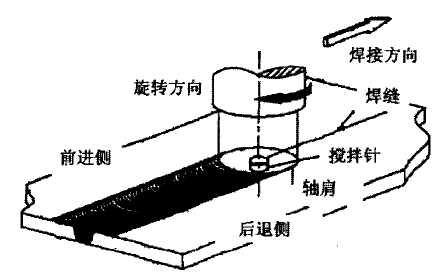 与此同时,英国剑桥焊接研究所在1991年公开了FSW焊专利,即搅拌摩擦焊,原理图见图1.1。它可以连接不同焊接位置,并且有多种接头形式,是普通摩擦焊所不具备的优点,很快就被投入到焊接高强铝合金,并取得优异的成绩。不难想象,搅拌摩擦焊会被越来越多的要求高质量的铝合金产品的部门接受,逐渐替代MIC焊,因为它展现了在焊铝方面强大的优势,大部分的焊接合金的工作量它都可以应付。而这项技术已经被用于生产航天航空的各种铝合金产品,目前美国波音公司已经将它用于生产燃料箱、液氧箱、火箭运载工具等。不只是这些,英国焊接研究所已经将它用来焊接多种合金。过去几年人们对该项技术的检验显示这种焊接技术具有极优的特点,像成本较低、可靠性强等,在将来的焊接制造业里有良好的前景,尽管它的开发时间目前来看较短,但它一定会在未来的工艺制作业中大放异彩。这一焊接技术的出现预示着航天焊接中对这种新型焊接技术的强烈需求,在21世纪,焊接技术的基本要求是高质量、自动化及可靠性,而这种技术能满足全部的要求,并且近些年航天焊接工作者的研究热点也包含着铝合金中厚板及其焊接技术。显而易见,制造业的需求和合金的焊接技术相辅相成,二者相互促进,促使铝合金焊接技术进一步的发展,并且使合金材料将来会活跃在各种制造业中。