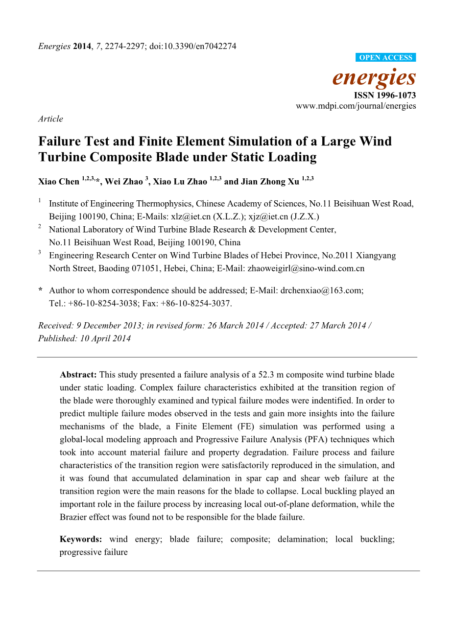 2中国北京市北四环西路11号风电叶片研发中心国家实验室,邮编:1001903.河北省风电叶片工程研究中心,中国河北省保定市向阳北街2011号,邮编:071051;邮箱:zhaoweigirl@sino-wind.com.cn