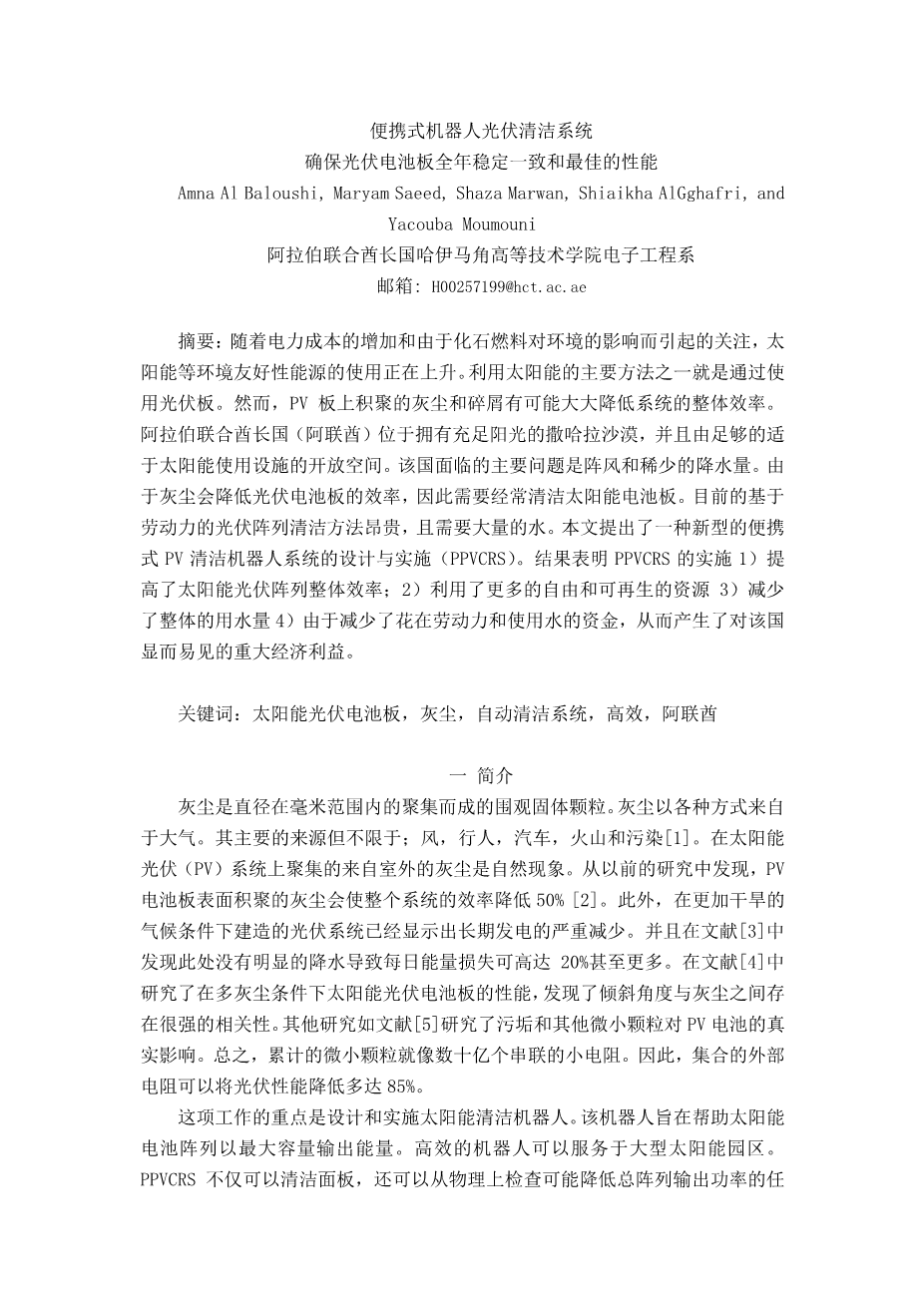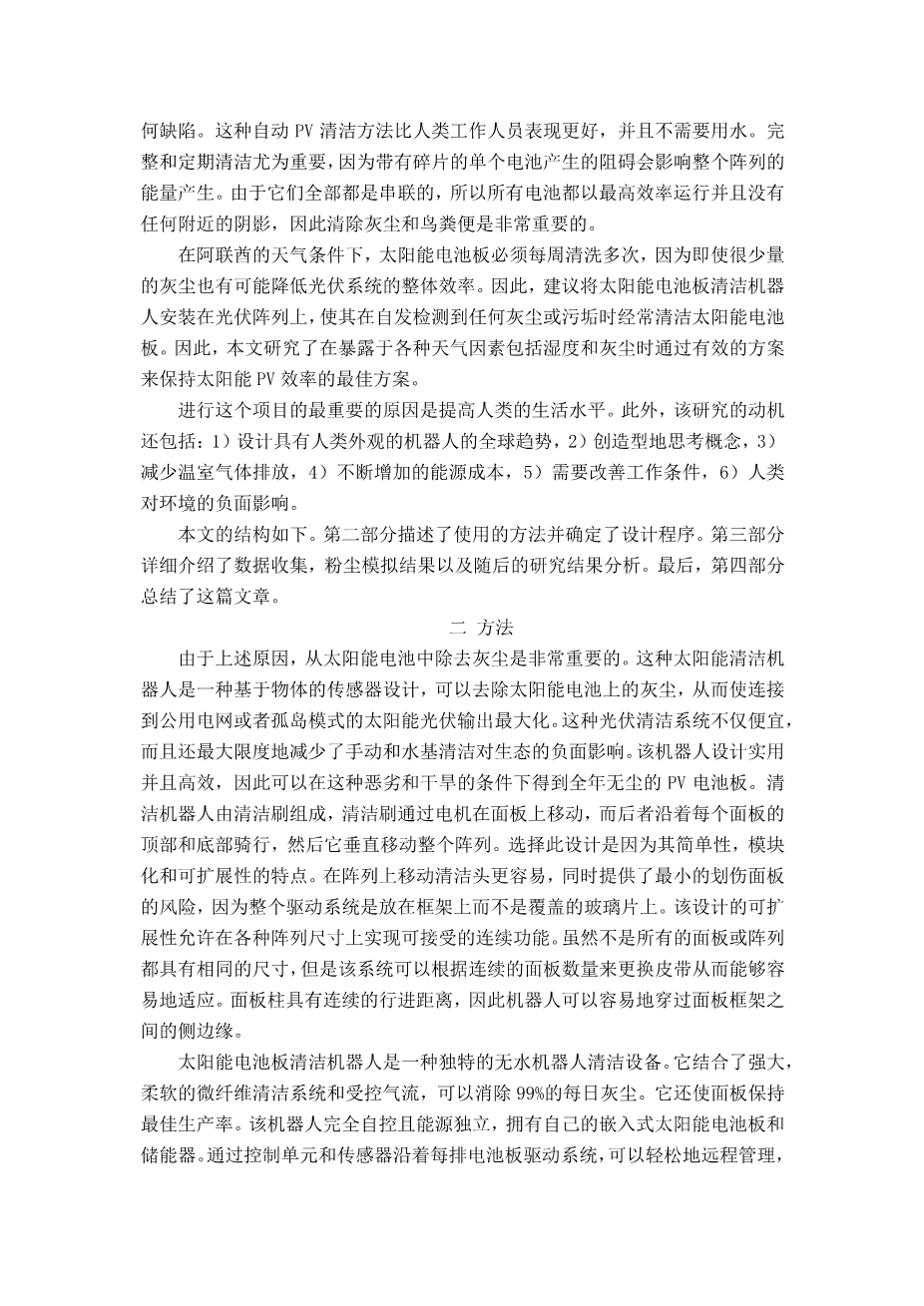 太阳能光伏清洁系统设计外文翻译资料 2021-12-27 22:22:53 英语原文共 7 页 英语原文共 13 页资料编号:[3324] 您需要先支付 20元 才能查看全部内容!立即支付 ﰊ PREVIOUS NEXT ﰋ 您可能感兴趣的文章 基于案例的加工夹具设计的推理方法外文翻译资料 先进的开发方法的计算机辅助夹具设计的标准Fixel库外文翻译资料 旋转工作台校准的精密角度分度系统设计外文翻译资料 一个由旋转或移动组成的生产加工线系统设计外文翻译资料 高速砂轮清洗效率的实验模拟外文翻译资料 小型瓦楞纸板厂减少1/20生产周期的方法外文翻译资料 钛合金铸件的表面反应层对可磨性的影响外文翻译资料 保形纳米颗粒涂层的振动原子层沉积外文翻译资料 一种WMR避障和运动规划方法设计及试验研究外文翻译资料 400 MW汽轮机中压段调节阀的疲劳寿命预测外文翻译资料