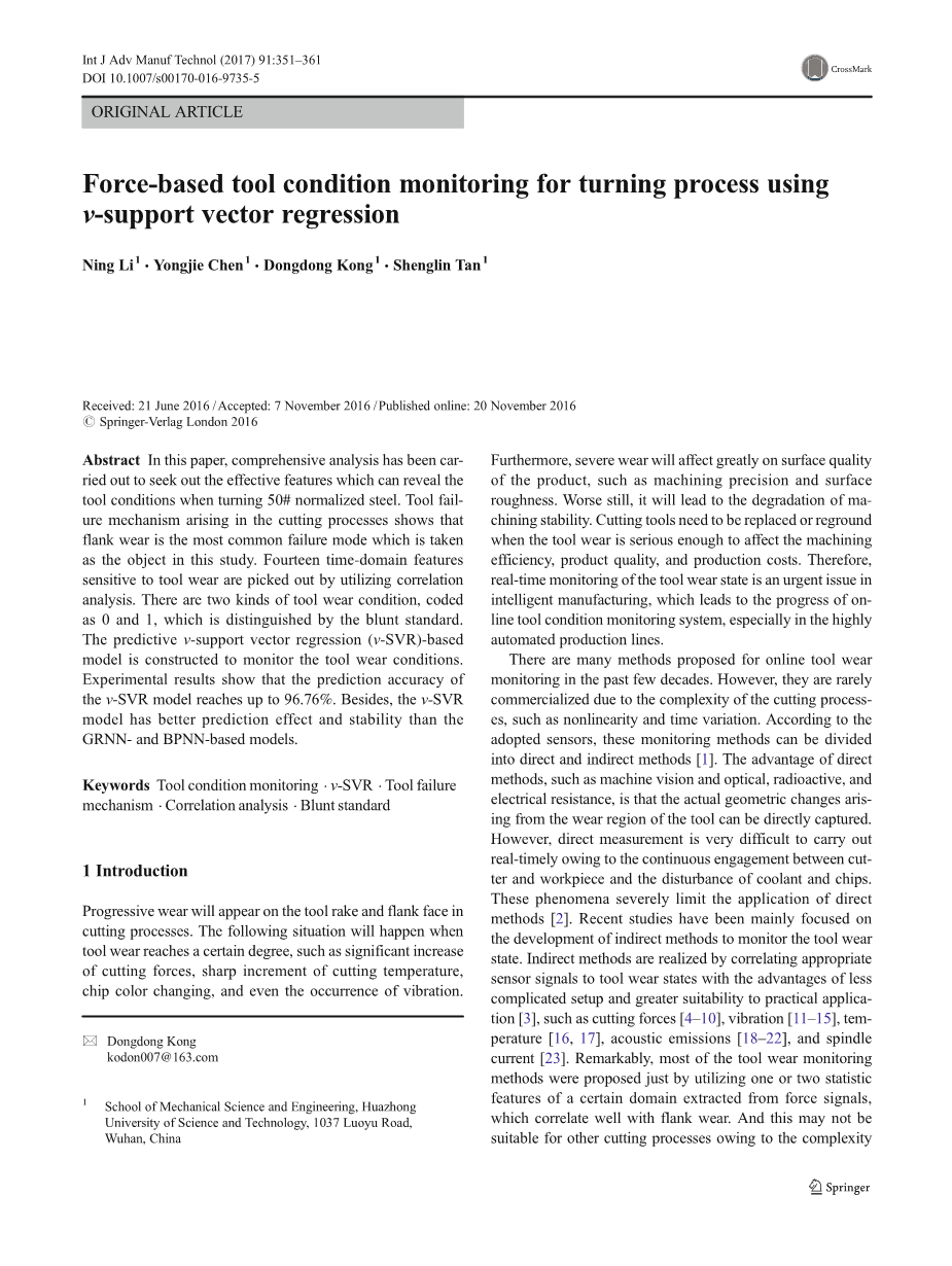 关键词:刀具状况监测;v-SVR;刀具失效机理;相关性分析;磨钝标准