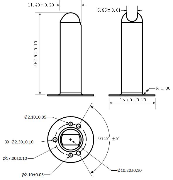 本设计所研究的手机接插件如图1.1所示,为法兰式不锈钢深拉伸件,材料:SUS316L,工件名称:STEM,材料厚度为t=0.6mm。