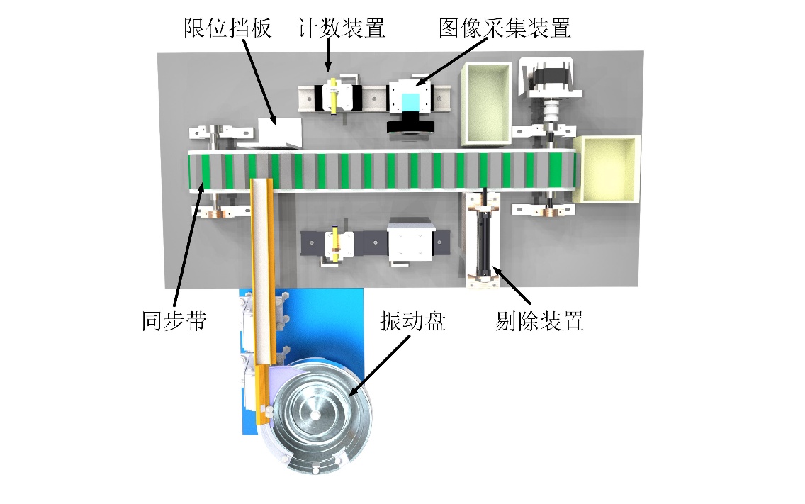 由该手机接插件的结构和成型特点可知,其特殊的底部端面的大法兰结构,将该零件的重心偏离了几何中心,无法放置在水平的输送带上,而底部端面又是最容易产生瑕疵的部分,这种结构特点就决定了很难套用常规的自动化分拣输送和图像采集方式,必须设计具有一定结构适应性的输送装置来放置工件和进行图像采集。