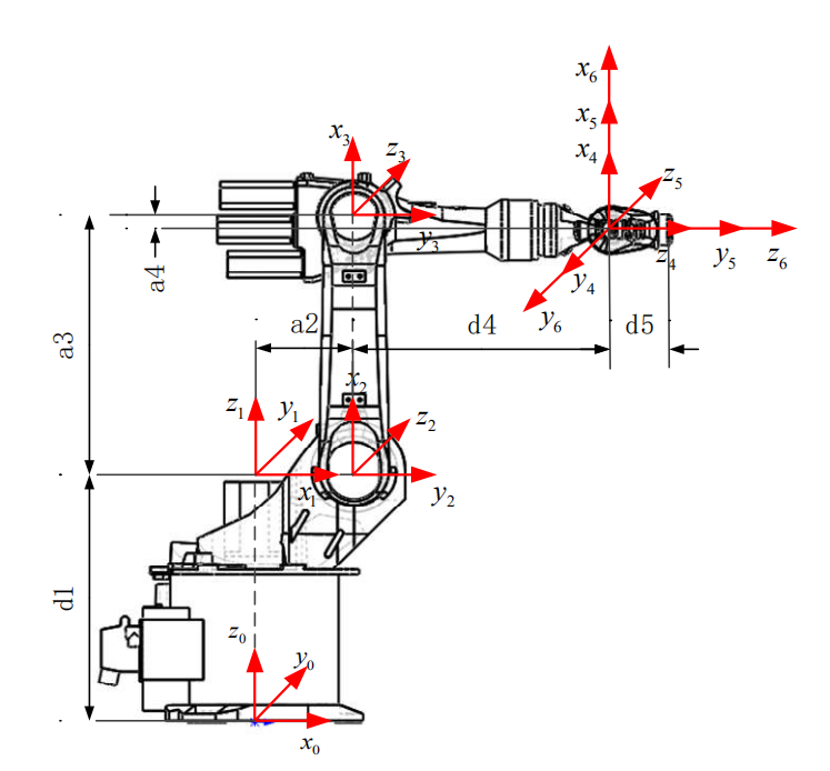(2) By establishing the robot linkage coordinate system, the kinematics of the robot is studied, and the motion simulation of the robot is realized.
