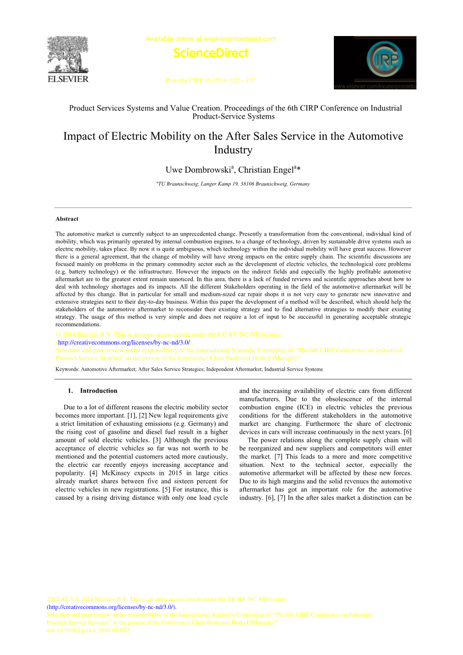 电动汽车对汽车行业售后服务的影响外文翻译资料
