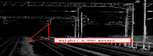 This study uses the algorithms from the open source library PCL to recognize two pair of rail tracks and three different overhead power cables. This study also compares the different methods used in point cloud segmentation.