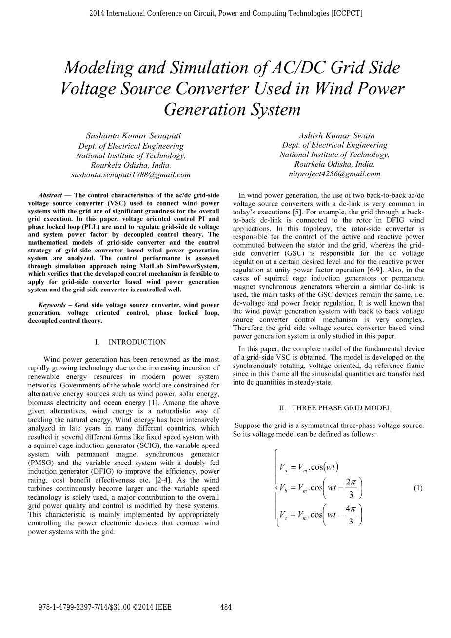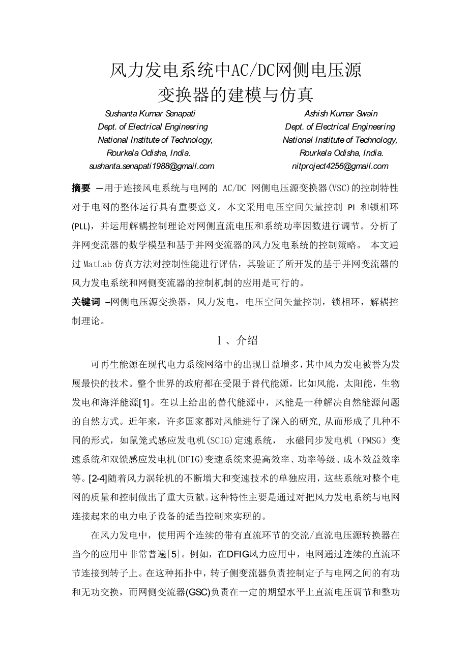 海上风力发电系统网侧变流器的设计与仿真外文翻译资料