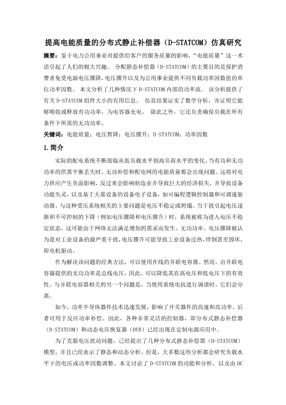 配电侧STATCOM的仿真研究外文翻译资料