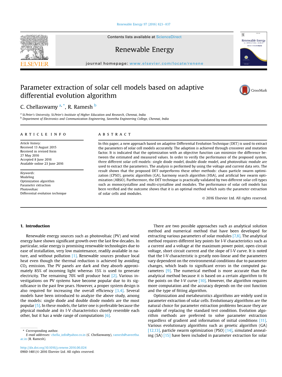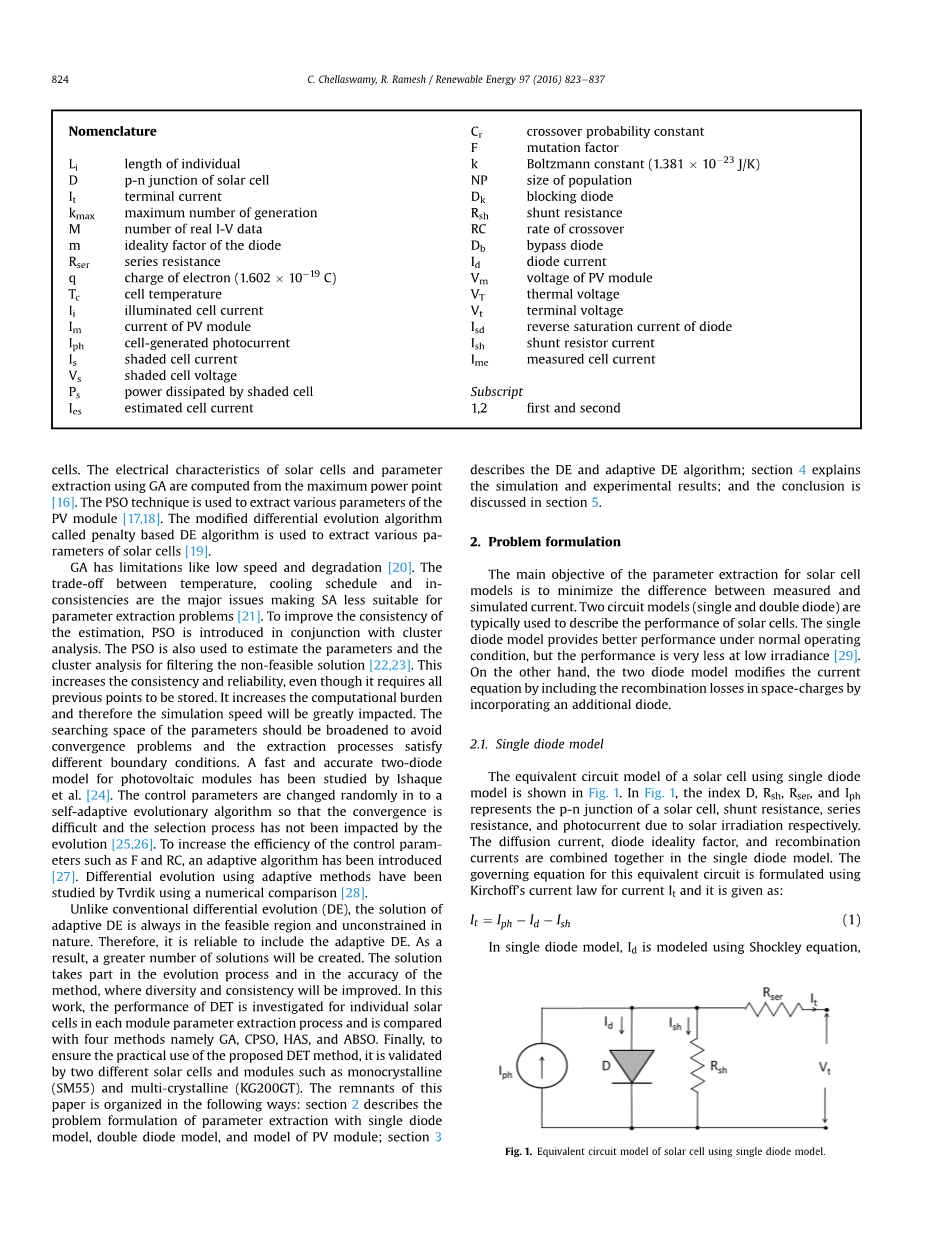 从最大功率点出发,计算了太阳能电池的电特性和用遗传算法提取参数。PSO技术用于提取光伏组件的各种参数。改进的差分进化算法称为基于惩罚的去噪算法,用于提取太阳能电池的各种参数。