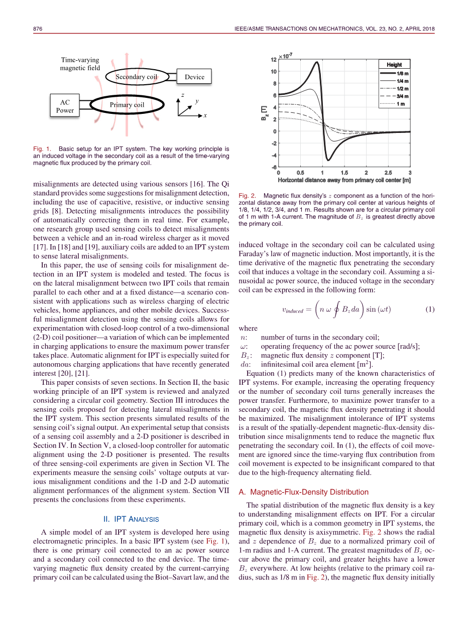 数字对象标识符10.1109/TMECH.2018.2801250感应功率传输(ipt)是最常见的无线功率传输方法。正如它的名字所暗示的,ipt利用线圈在彼此接近的感应连接来传递能量 [2]。特斯拉被广泛认为是 ipt 的先驱, 因为他在19世纪后期尝试通过空气为电气设备供电[3]。几十年前,法拉第和亨利发现了电磁感应, 1885年斯坦利创造了第一个实用的电力变压器--ipt [4], [5] 的一个主要例子。ipt已在手机、电动汽车、医疗植入物等设备的无线充电中实现 [1], [6]。