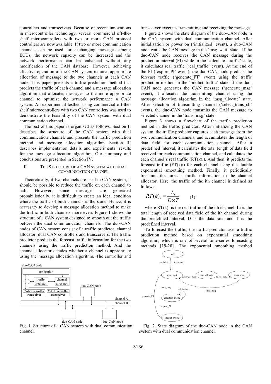 本文的其余部分是按如下方式组织的,第二部分描述双通道CAN系统的结构并且展示流量预测思路和流量分配算法。第三部分描述流量分配算法的具体实现和实验结果,第四部分将展示总结和结论。