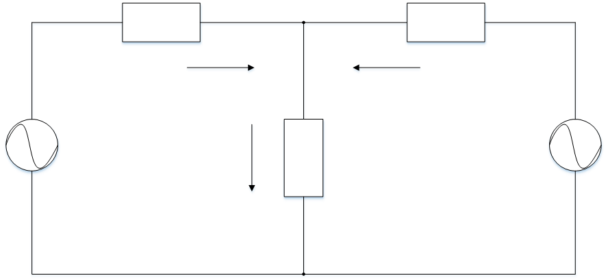 两逆变器并联的等效模型图如下,先对图中参数进行说明:为逆变器1的空载输出电压,是是逆变器1的输出电阻,是感抗,是逆变器1的输出电流。为逆变器2的空载输出电压,是逆变器2的等效输出电阻,是感抗,是逆变器2的输出电流。为两逆变器汇流处的电压,为负载,是负载电流。