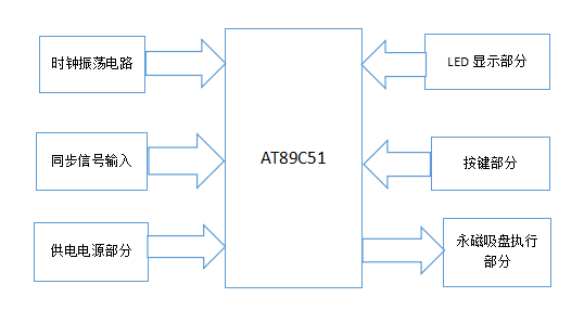 整个控制系统主要由供电电源部分、同步信号部分、控制电路部分、按键部分、脉冲控制部分、执行部分等构成。工作流程如下,按下对应的按键,单片机接收到相应的指令并且检测到同步信号,然后单片机读取信号,再经过内部程序的运行,给出对应的脉冲信号控制晶闸管的工作状态是导通还是关闭,进而产生相应的磁场来达到充磁或者退磁的目的。