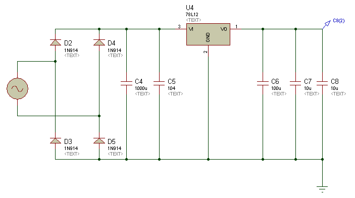 - 供电电源部分,该部分的主要作用是给电控永磁吸盘中的充磁退磁部分供电,另外还给控制电路部分的AT89C51单片机芯片供电,让单片机工作,同时也会给数字电路部分供电。