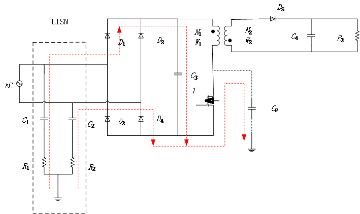 “二十世纪五十年代初,美国宇航局以小型化、重量轻为目标,为搭载火箭开发了开关电源,在近半个世纪的发展过程中,SMPS因具有体积小、重量轻、效率高、发热量低、性能稳定等优点而逐渐取代传统技术设计制造的连续工作的线性电源,广泛应用于电子、电气设备及家电领域。”由于目前世界供电选择交流电网供电,SMPS在与电网和负载接触的过程中,会产生断断续续的输入电流,这不仅极大降低电源的输入功率,还产生了大量高次谐波。SMPS由于采用功率半导体器件作为开关管,在高频电网中会产生较高的尖峰干扰电压、电流以及谐波分量,造成严重的传导性电磁干扰,不仅影响了电网中其他电子器件的正常工作,也使得SMPS无法在部分精密的电子仪器中使用。”美国是世界上最先感受到电磁污染引起潜在问题的国家之一,为了减小、抑制和消除电磁干扰,美国联邦通讯委员会(FCC)在上世纪八十年代初就制定了强制实施的控制电磁干扰的极限以及相应的标准(MIL.STD.461B等)。” 传导干扰可分为共模干扰和差模干扰,共模干扰指两条电源线对地的干扰噪声,特点为大小方向相同,主要由电源线对地的杂散电容引起;差模干扰指两条电源线之间产生的干扰噪声,特点为大小相同,方向相反“根据IBM公司的长期观察统计表明:严重威胁电气、电子设备安全可靠工作的起因中,88.5%是来自电源中的电压瞬变和电磁脉冲。同时,由于电源线EMI信号具有幅度大、 频谱宽等特点,而且其中夹杂大量的瞬态大电压和浪涌电流,这些因素使电源线 传导干扰的抑制较难控制。”