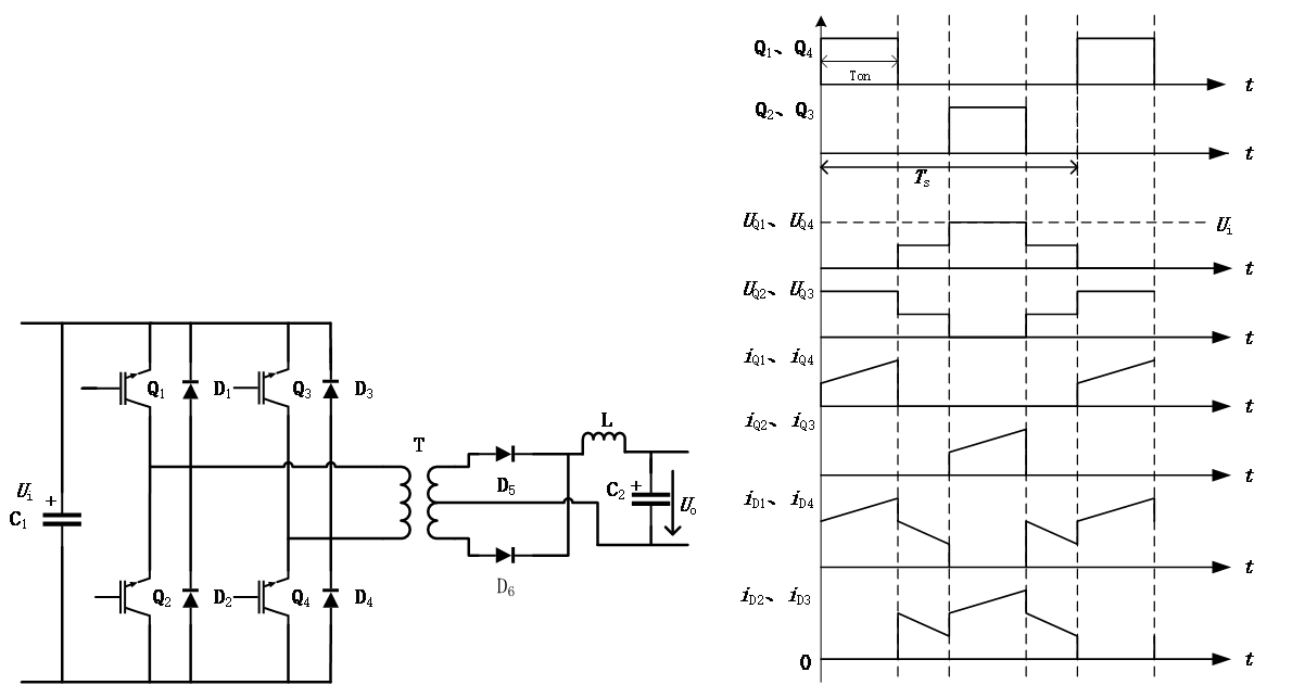 DC-DC | 将一种给定的直流电转变为另一种固定或可变的直流电压 | 直流斩波电路、全桥电路 | 用于高频直流电压变换器 |