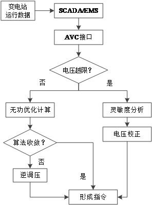 当前计算机技术迅速提高,在此基础之下,我国的电网自动化水平也随之日渐提高。各类高级应用软件如基于能量管理系统(EMS)与配网自动化系统(SCADA)得到广泛应用。以前靠人工很难完成的任务,如在线的实时负荷预测,发、输电计划的分配,网络拓扑的进阶分析,电力系统的状态估计,最优潮流的计算等,现在用SCADA系统就可以轻松完成。SCDAD系统在各地的应用可谓效果显著。目前,为了解决无功分配的问题,各地区级电网中都配备有VQC电压无功补偿装置。VQC的作用是对变压器分接头档位和电容器投切进行本地调节。但是其缺点也很明显,在解决单一变电站电压质量问题,提高设备利用率上,其效果显著。但无法控制整个地区范围内所有的电压无功水平。目前,AVC(电压自动控制系统)的应用可以有效解决这个问题。在国际上AVC控制模式可以分为一、二、三级电压控制模式,其分类依据是电网规模和系统的复杂程度。德国 RWE 公司设计推出的两级电压控制系统中,没有分区控制的理论。其基本方法是电力调控中心统一决策,以最优潮流计算当日的目标值直接下发到控制设备,完成全局的电压控制。这种控制方法是基于德国的具体情况而设计产生,德国本身不像我国一样地域辽阔,并且不同地区的发展存在差异,因此其没有采用分区方式。法国 EDF 系统采用的是三级电压控制模式,这是最早进行三级电压控制模式研究的单位,其研究工作始于上世纪 70 年代,到目前为止已经经历了三十余年的研究、开发和应用。这是当今为止国际上公认的、最为先进的电压控制系统。目前为止,我国是二级和三级并存的情况,具体根据各个地区的发展,人口密度等情况来应用[3-4]。