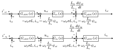 - 通过双馈电机的基本方程,分别推导出仅包含电流环、考虑锁相环影响的双馈电机的小信号模型;