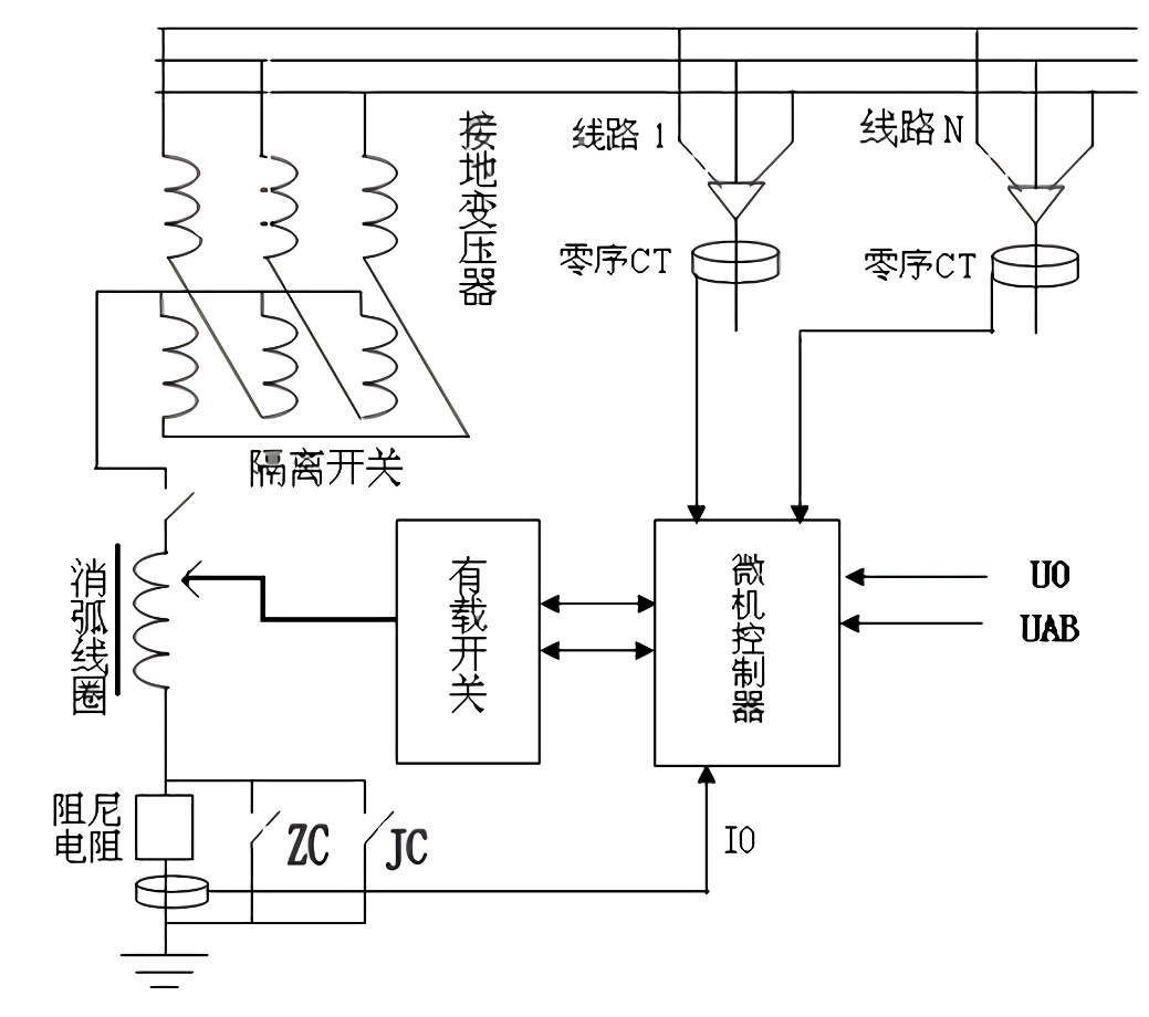 Key Words: multi-tap arc-suppression coil; automatic turn; neutral point; capacitance current.