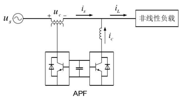 ,APF)的思想早在上个世纪六十年代就有人提出,但由于产生补偿的电流的消耗非常大,成本很高,因而并没有受到关注。但几年之后,日本研究人员提出了采用变流器构成的有源电力滤波器,这才确立了APF的所有概念和结构。其基本原理是,检测电网中存在的谐波电流,作为指令控制一个与电网并联的电流源,使其输出电流与指令同步[5] [6],该电流源就提供了所需的谐波电流,电网只需要提供基波电流。