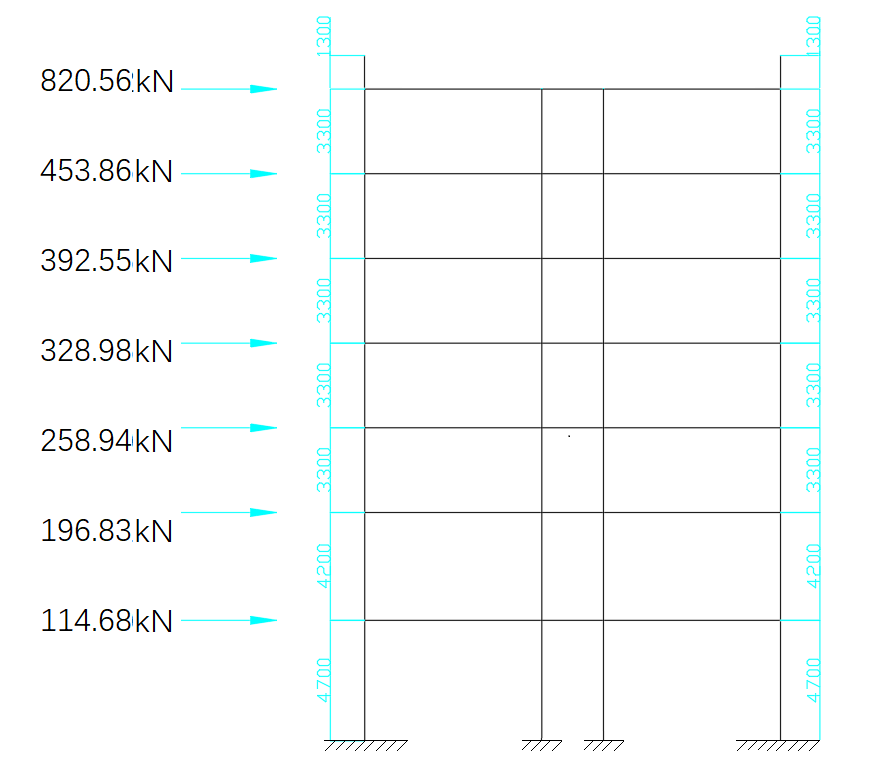 Step 3: load statistics. Statistics of constant load, live load, wind load and earthquake load. Where, the wind load is converted into the load distributed along the height of the building, and the seismic load is calculated by the bottom shear method.