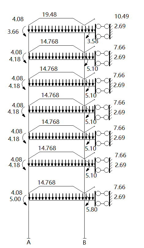 屋面横梁竖向线荷载标准值(七层)