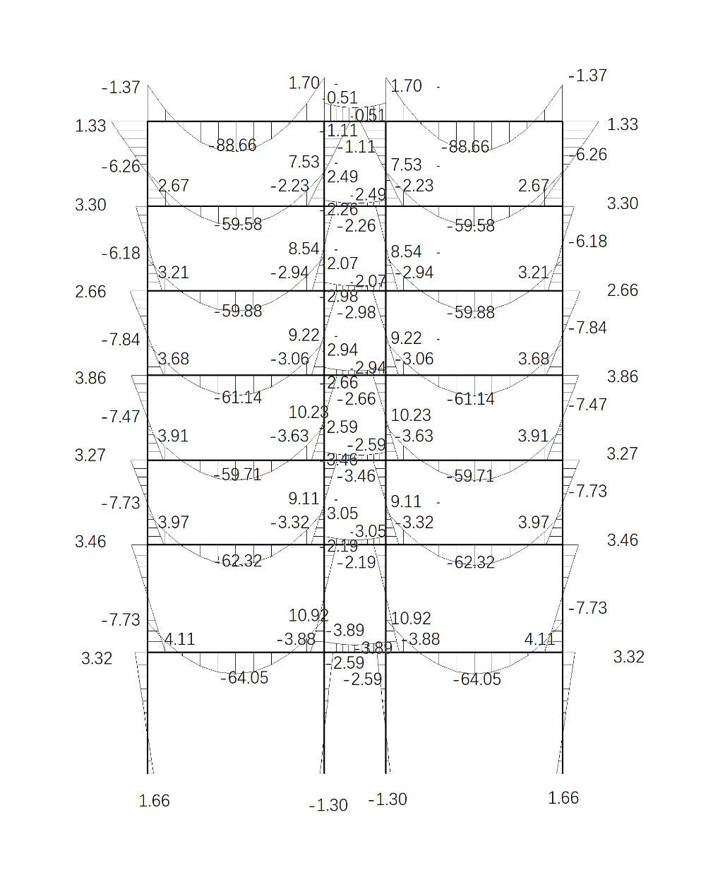 Step 4: internal force calculation. Under the action of vertical load, the internal force generated by the structure (calculated by layering method or by using structural mechanics solver, which is used in this design). The internal force generated by the structure under the action of horizontal load (solved by d-value method or structural mechanics solver, d-value method is used in this design).