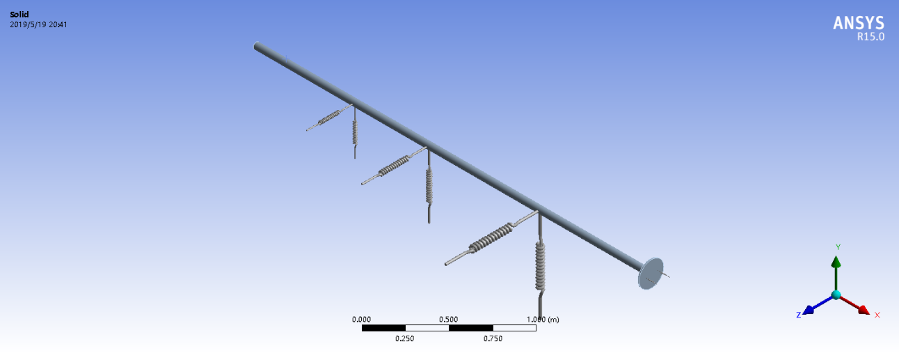 第二章简单介绍了ANSYS Workbench软件,并详细介绍了轴-旋转壳系统的建模,模型壳选择的是圆锥 圆柱壳,轴使用梁单元简化,轴承基座用弹簧简化。然后详细介绍了模型的建成与简化以及模型的具体尺寸。为在下一章节中对该模型进行模态分析以及谐响应分析做好基础。