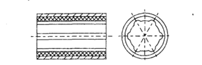 重庆大学周忆团队[1]等通过对平板和圆弧形状的水润滑轴承进行对比研究, 研究结果表明圆弧型摩擦面的不稳定模态及耦合模态实部最大值出现的频率都大于平面型摩擦面, 原因是圆弧型摩擦面的有效接触面积要大于平面型接触面, 从而增加噪声出现的可能性。武汉理工大学刘正林团队[2]通过实验与仿真表明, 平面型相比凹面型和凸面型更易于形成弹-塑流体动压润滑, 因此具有良好的启动性及低速运转性, 所以从降低尾轴承振鸣音的临界速度及摩擦因数的角度考虑, 平面型结构更好。青岛理工大学律辉、王优强[3]等通过对平板型板条、凸弧型板条、凹弧型板条3种结构进行有限元分析, 结果表明平板型力学性能为最优, 因为其在最大位移量、最大应力值、最大应变值等方面都要优于其他两种形状。为了提高尾轴承冷却润滑及排除泥沙介质的效果, 通常在尾轴承内表面开有不同的沟槽结构, 目前在实际应用中主要有螺旋式沟槽结构及纵向式沟槽结构两种。T.K.H.R.Tanamal[4]通过对纵向水槽结构尾轴承进行数学建模分析, 在不同轴承偏心率及不同润滑剂的条件下进行仿真分析, 得到的结果显示当开有纵向水槽时, 降低了水膜压力及轴承承载力。王优强[5]团队通过将圆弧型、矩形、燕尾型3种结构的螺旋槽尾轴承结构尺寸优化问题进行了数据分析 结果表明通过优化矩形槽和燕尾槽的外形结构可以得到理想的尺寸参数, 而通过优化圆弧型螺旋槽半径外形尺寸结构, 虽然可以提高尾轴承的力学性能和动态特性, 但却使尾轴承的总质量有明显降低。轴承由于其自身所处于的非常复杂的工作环境,为了需要保证自身能够在各种环境中正常工作,其自身结构的设计是非常重要的一点。水润滑轴承由于其涉及到润滑理论、高分子材料等多方面的领域,需要通过大量的研究以及实验来得到其最佳的设计参数来维持自身的结构寿命。图1是常见的水润滑轴承,六纵向沟水润滑橡胶轴承机构,由于其为了保证具有足够的润滑性能因而对自身表面的粗糙度有较严格的要求,通常要求小于等于Ra3.2μm