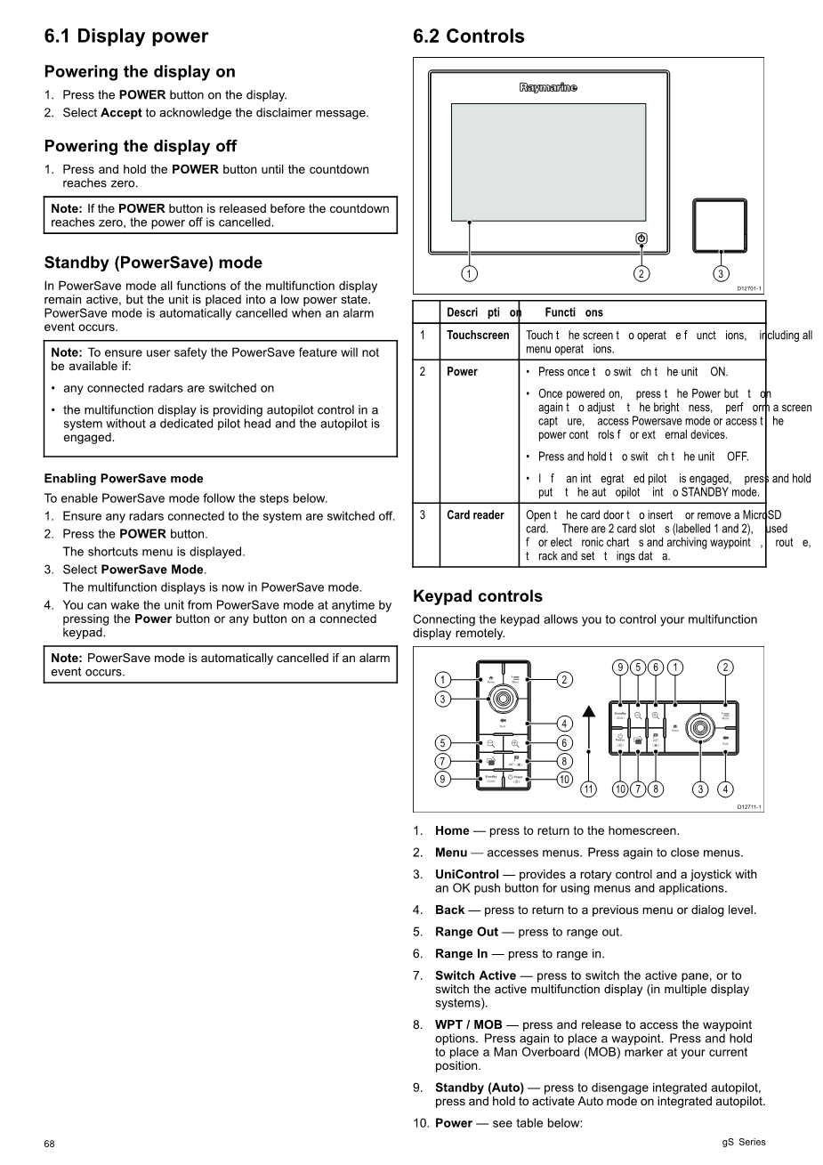 通过触控屏幕,你可以实现所有的功能。但是在某些情况下(比如说在大风大浪的海况下),是不适合通过触控屏幕操控的。在这些情况下,雷松公司强烈建议您激活触控锁,使用物理按键来操控你的多功能显示屏。
