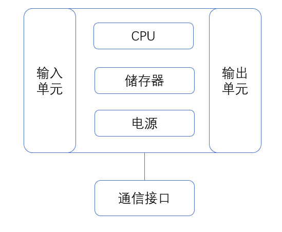 PLC由中央处理器、储存器、电源、输入/输出单元和通信接口五个部分组成,其结构如图1.1