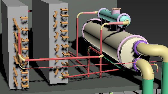 船舶空调系统是船舶上的重要辅助设备,其正常运行不仅能够有效改善船舶的空气环境,而且还为船员的工作和生活提供方便。近几年随着现代相关船舶技术的不断发展,我们对船舶空调空气调节系统的要求也越来越高了。建立能准确反映船舶空调系统特性的数学模型不仅对对系统的运行控制,而且和性能分析都有着重要的意义。因此,对船舶空调系统进行建模和仿真研究显得特别重要了。考虑到安全保障和经济效益,所以需要船员及时动态的掌握船舶空调的运行状态以及预测、诊断潜在和存在的故障。船舶空调的动态仿真及其数学模型真实的不仅反映了船用空调的运行工况是怎样的,而且还可以作为培训船员的教学工具,并且还会为空调的设计提供了可靠的科学依据。借由3dsmax技术,用3dsmax来达到制作船舶空调系统的模型的目的。
