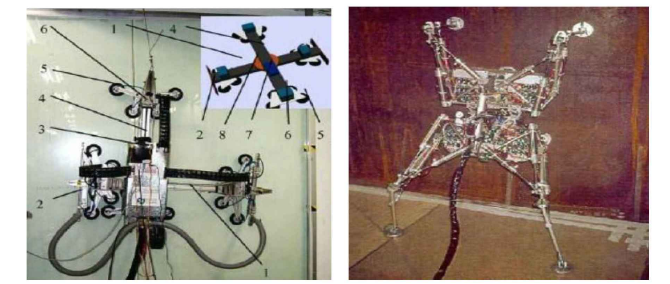 (4)脚足式吸附:越障能力很强,移动速度慢,较难控制。适合多壁面之间频繁移动移动的工作场合。