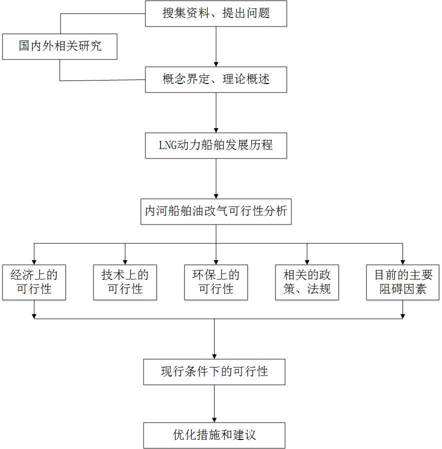 本毕业设计将采用实地调查与文献查阅相结合的方法。前期会查阅大量文献、报道,分析理论可行性,并寻找改善方法。后期会通过线下问卷调查、电话调查等形式,从船东、船员的角度调察他们的主要顾虑因素,及现行船舶油改气方案的实际可行性。