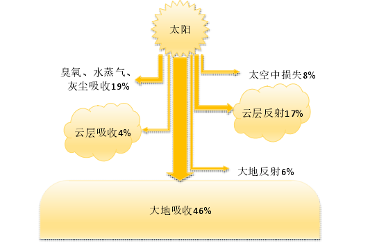 能源对人类的影响十分重大,是人们生存发展的重要物质基础,在整个人类文明发展历程中扮演着不可或缺的角色[1]。而随着社会的发展,能源变得越来越少,因此发展可再生能源显得非常紧迫和有必要。而地热能就是其中的佼佼者。它无穷无尽且能量巨大。地热能的来源有三部分1.太阳辐射2.地球内部的熔融岩浆3.放射性物质的衰变。大多太阳能被土壤所吸收,如图1-1所示。据有关资料,全球地热能的总量大约为1.45×1026 J,是全球煤炭总量的17000万倍[2]热泵是利用地热能的一种机器,它的产生可以更好的发展地热能,因此研究地源热泵的传热特性有着很好的意义[3]。