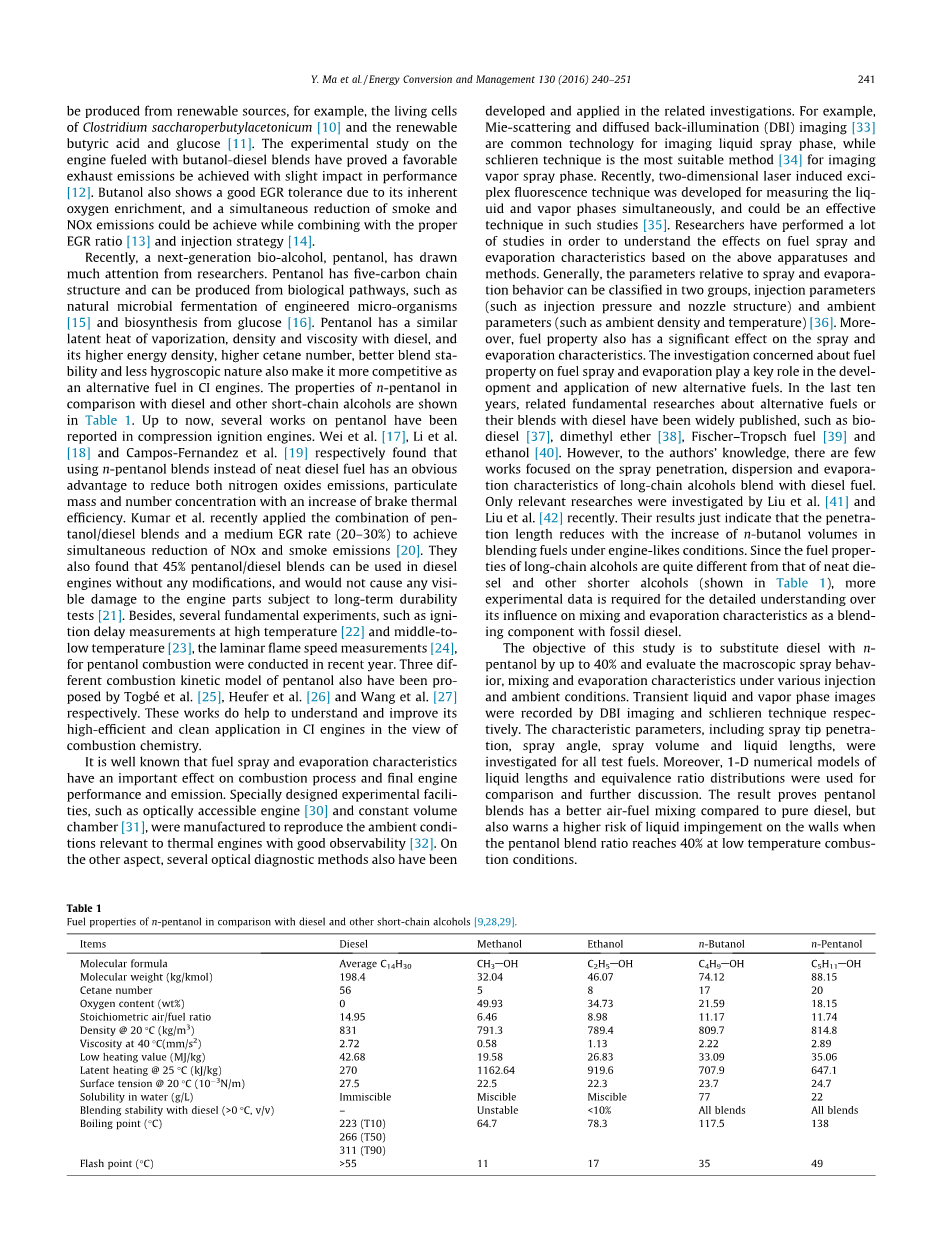 基于定容燃烧弹的正戊醇-柴油混合物的喷雾和蒸发特性