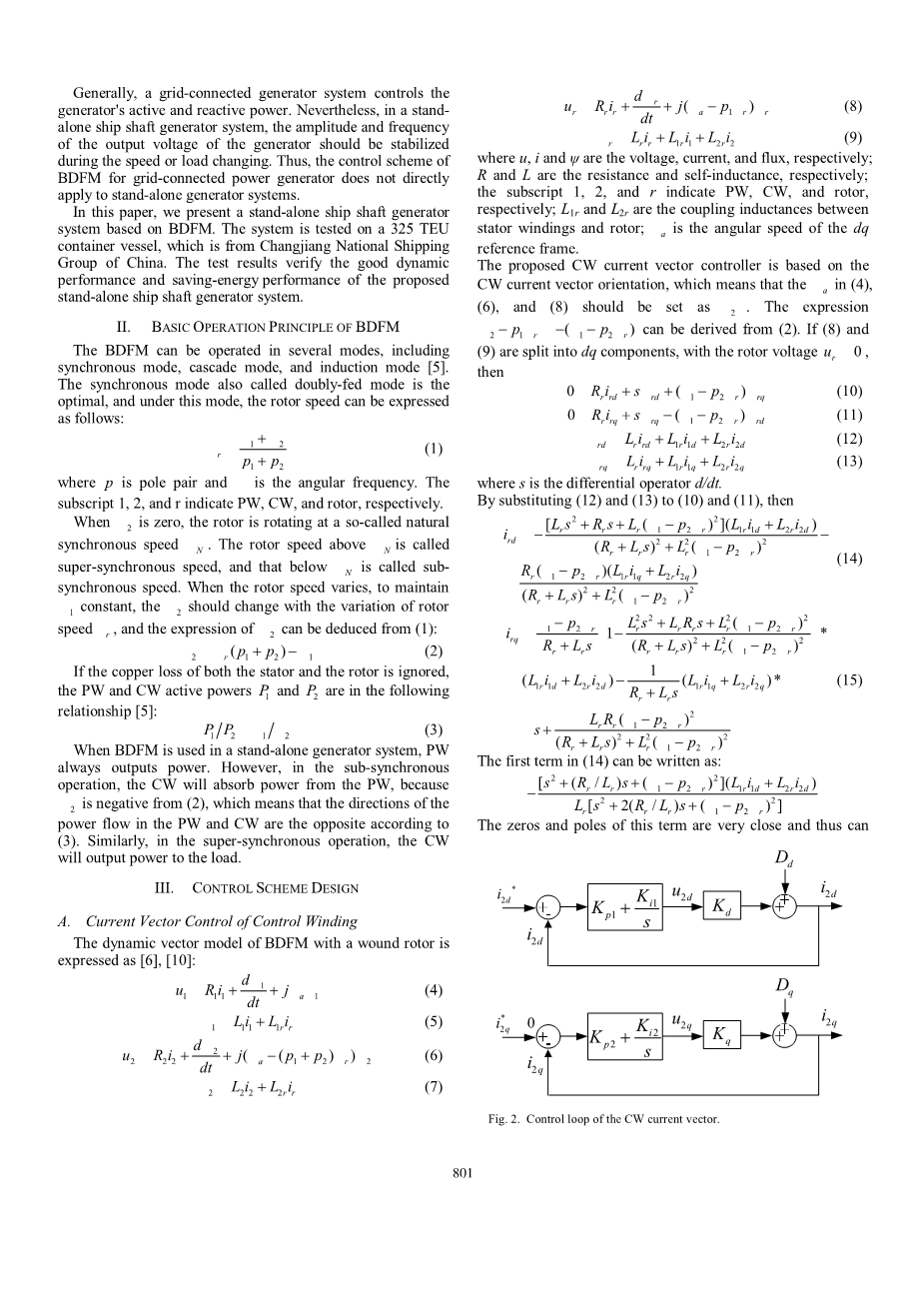 当BDFM用于独立发电系统时,PW总是输出功率。但是,在亚同步操作中,CW将从PW吸收功率,因为从(2)开始是阴性的,这意味着根据(3)在PW和CW中功率流的方向是相反的。同样,在超同步操作中,CW将向负载输出功率。