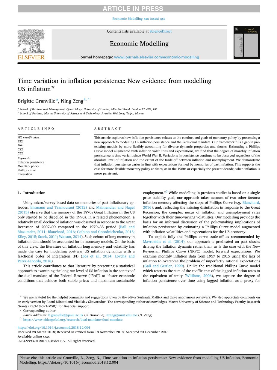通货膨胀持续的时间变化:美国通货膨胀模型的新证据外文翻译资料