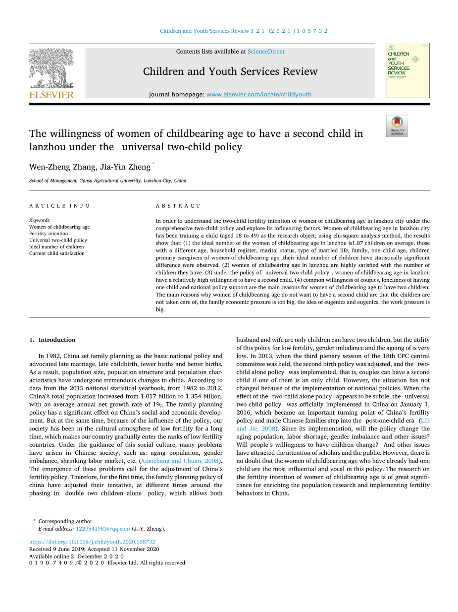 普遍二胎政策”下兰州育龄妇女生育第二胎的意愿外文翻译资料