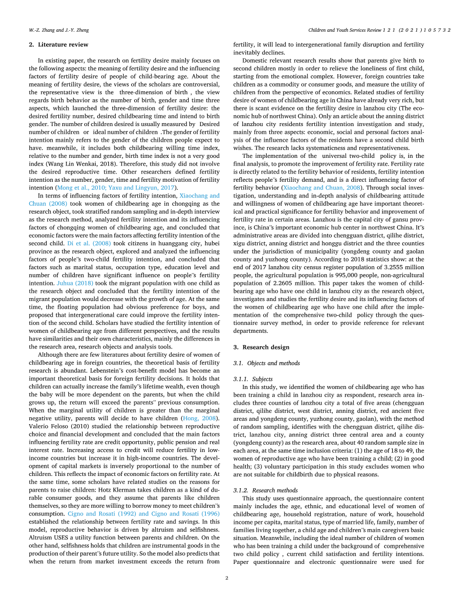 国内相关研究结果表明,父母生育二孩的主要目的是为了减轻一个孩子的孤独感,这是从情感上开始的。但是,国外将儿童视为商品或消费品,并从经济学的角度衡量儿童的效用。中国育龄妇女生育意愿的相关研究已经非常丰富,但是关于兰州市(中国西北的经济中心)的生育意愿的证据很少。仅有一篇关于兰州市安宁区居民生育意愿的调查研究,主要从三个方面:经济,社会和个人因素分析对居民有第二胎生育意愿的影响因素进行分析。该研究缺乏系统性和代表性。