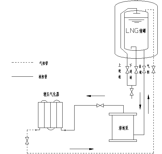 (3)进行工艺流程设计与设备选型。主要设备有 LNG储罐、低温潜液泵、增压汽化器 、高压汽化器、储气井、 CNG加气机、LNG加气机、管道、管件、阀门等。
