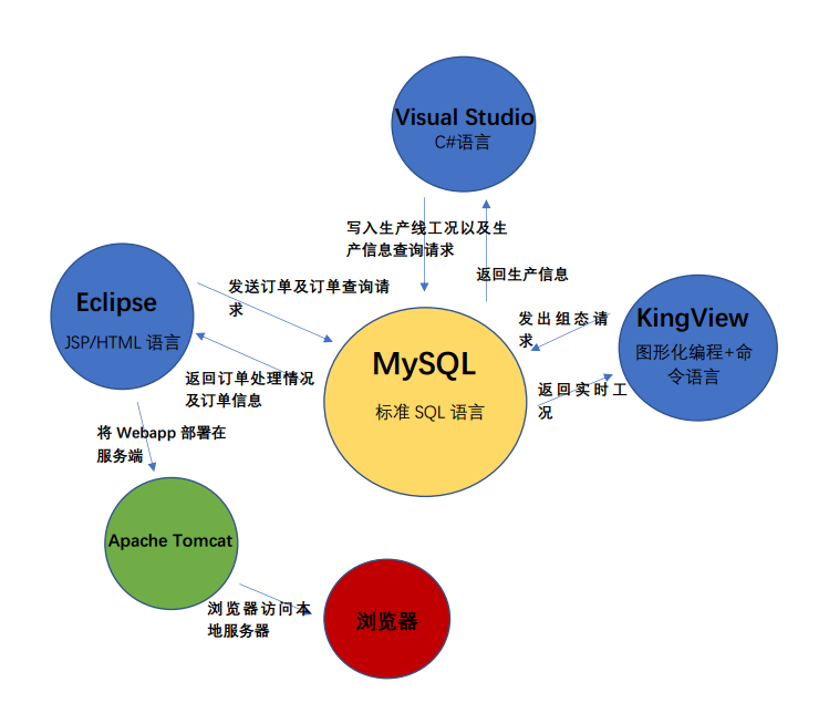 论文以数据库系统为中心,移动端订单系统为窗口,生产执行系统为执行器,组态系统为监视器,各个系统之间建立数据与网路互联,构建一个集四个系统无缝对接的订单生产集成系统。在该系统中,客户在移动端订单系统根绝需求下订单,订单系统将订单数据发送至数据库系统,再由生产执行系统读入相应订单数据并根绝要求开始生产。在生产过程中,生产执行系统实时将生产计划、完成情况、生产线状态等数据发送至数据库。工程师可以通过生产执行系统中的生产信息系统进行查询,而客户也可以通过订单系统中的订单状态查询得知订单的相关信息。同时,通过数据库系统与组态系统的交互,实现集成系统与底层设备(如PLC、DCS等)交互,在监控底层设备的同时实时反映设备工况。通过本文订单集成系统的构建,能够实现在低成本的前提下处理来自庞大客户群体的信息以及请求,在便利和客户的同时大大降低了生产企业的资源、人力、管理成本,推动企业生产方式向柔性化、智能化、精细化转变。