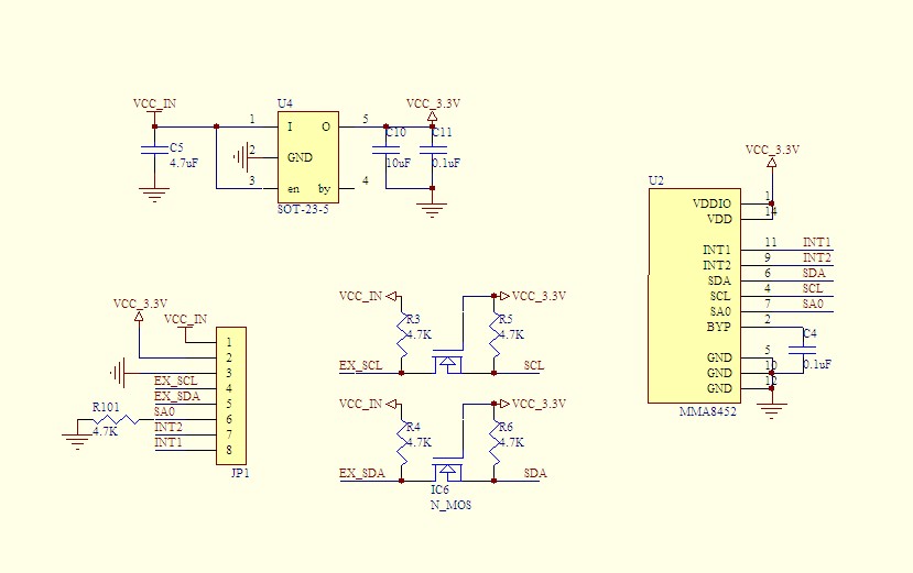电机在运行时,振动是无法完全消除的,因此对于电机振动的频率、幅度,国家都有相应的振动标准要求。为了对故障征兆进行提前的预防处理和维护,以及出现故障的电机进行故障排查,本次的设计将基于MMA8452压电式加速度传感器采集电机在运行过程中x,y,z三个方向产生的振动信号[15],得到三轴数据并上传至计算机显示,监测电机的运行状况,为接下来的电机故障排查作准备。得到的振动数据可以通过频谱分析得到各谐波分量,提取故障特征频率,完成故障排查工作[16]。对于振动信号存在故障特征频率、或故障征兆频率的电机进行及时的停机维护,防止更严重状况的发生。